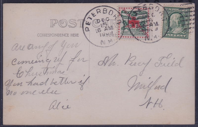 All postmarked during the holiday season of the year of issuance. Before 1930 tied ons are almost always postcards; after 1930 they are usually covers. We also have some other tied ons, like US local and foreign TB seals